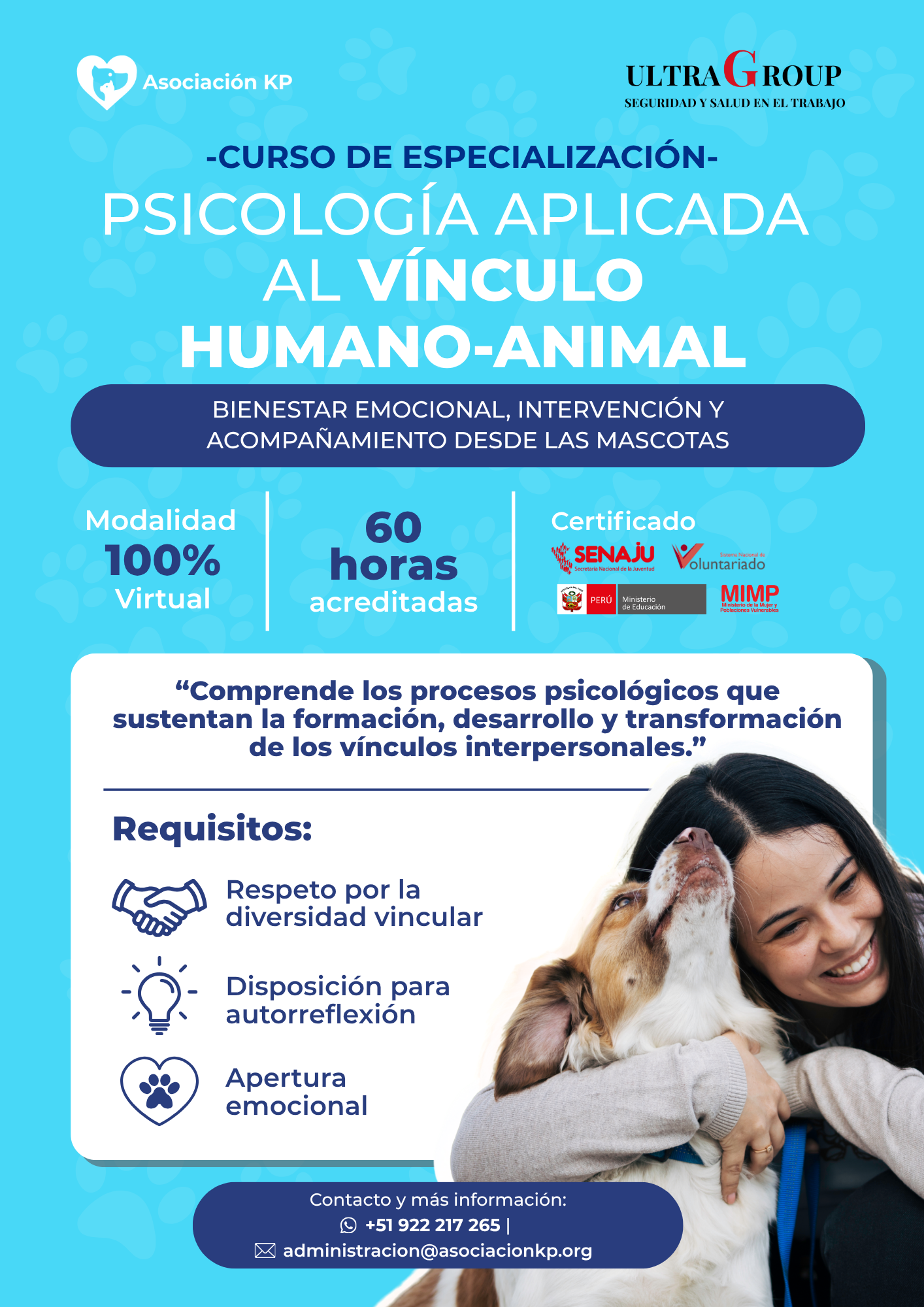 Comprender y aplicar herramientas psicológicas para fortalecer el vínculo humano–animal y promover bienestar emocional en personas y mascotas.