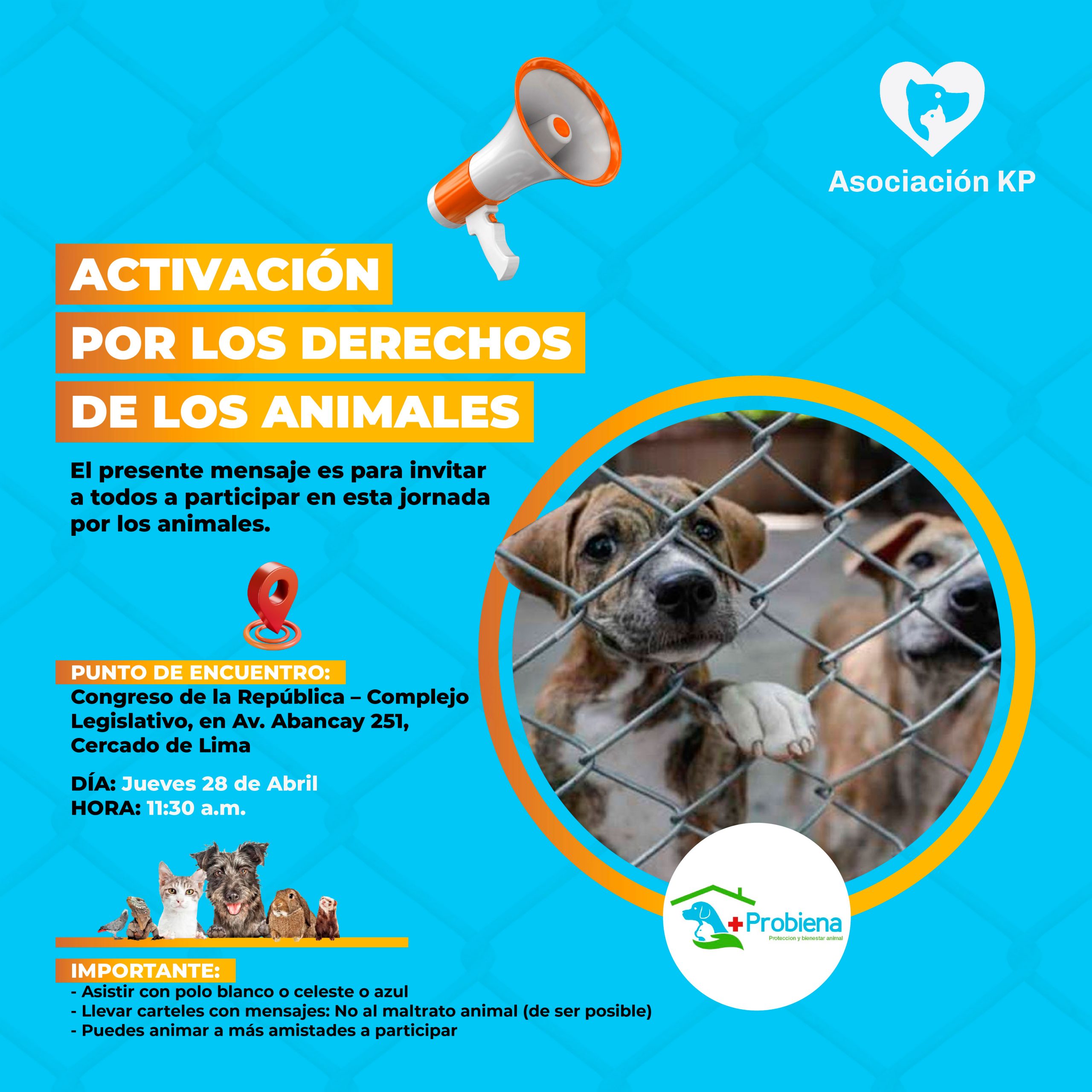 Participa en la Activación KP, que tiene como objetivo la entrega del proyecto de ley animal en beneficio de los animales de compañia. Acompáñanos durante esta jornada de activación cívica, y hagamos sentir la voz de los animales. La activación será de 12 pm a 2 pm, conoce la programación aquí: